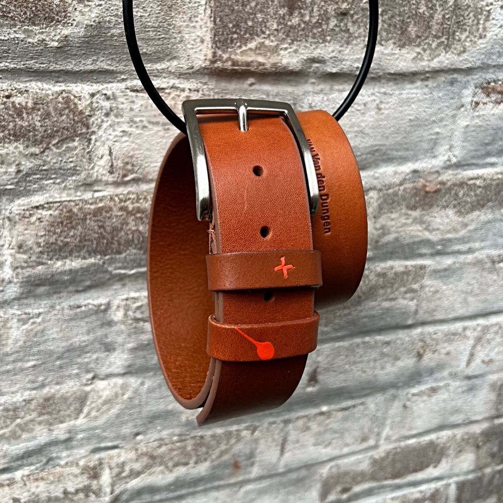 4 cm breed. Wordt geleverd met een ponsje, zodat je de riem zelf op de goede lengte kan maken.