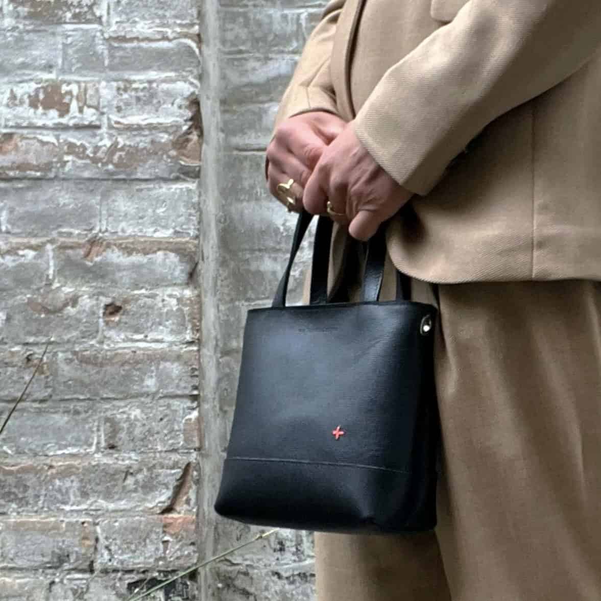Handtas van zwart leer.